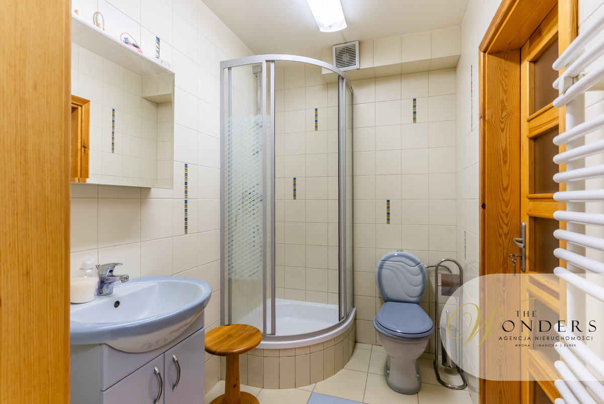 • Łazienka - wyposażona w prysznic, dodatkowo obok łazienki jest pomieszczenie przeznaczone pod saune.