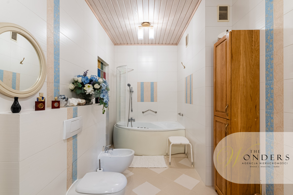 • Łazienka - duże pomieszczenie, z dwoma umywalkami oraz wanną wyposażoną w hydromasaż.
