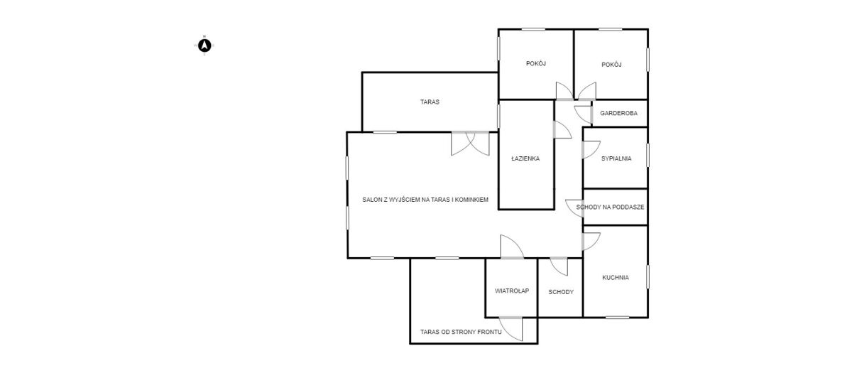 • Salon - przestronna powierzchnia, doświetlona dzięki obecności dużych okien, kominek oraz wyjście na taras,
