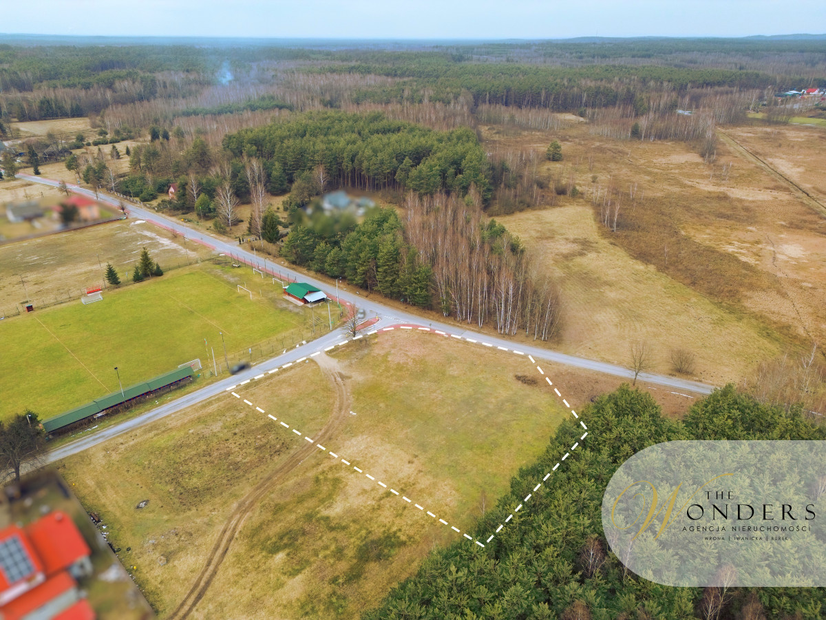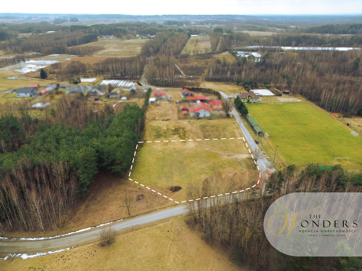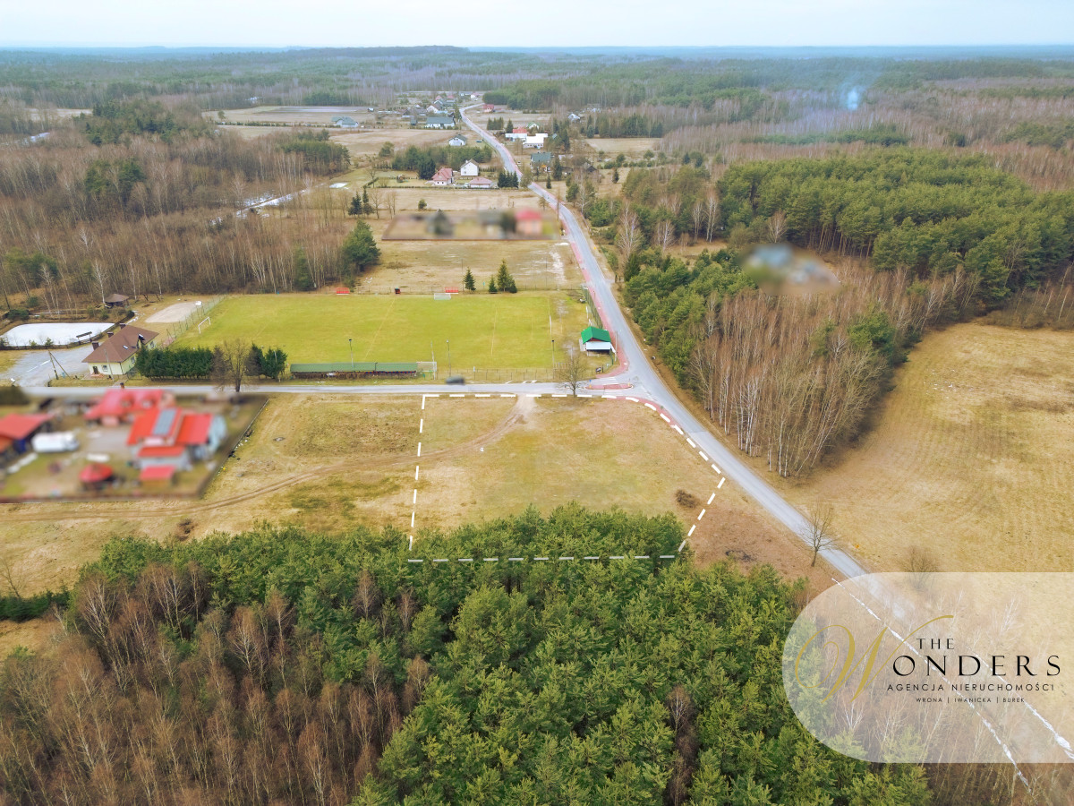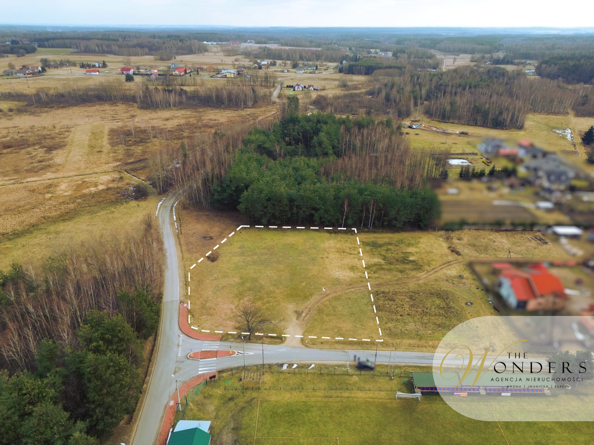 Działka położona jest w cichej części miejscowości, w sąsiedztwie zabudowy jednorodzinnej oraz terenów zielonych. Bliskość lasu podnosi walory krajobrazowe i rekreacyjne, a znajdujący się w niedalekiej odległości stadion piłkarski stanowi dodatkowy atut dla osób aktywnych oraz rodzin z dziećmi.